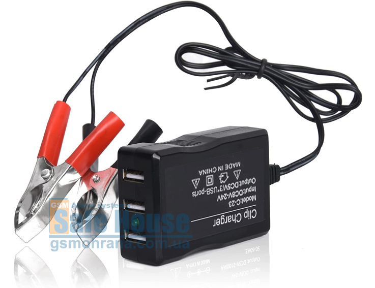 USB зарядка от аккумулятора 8-24В с “крокодилами” C-25 – это практичный и удобный аксессуар, позволяющий быстро заряжать от аккумулятора сразу три устройства и может использоваться с любым аккумулятором напряжением от 8 до 24В.