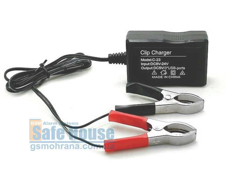USB зарядка от аккумулятора 8-24В с "крокодилами" C-25