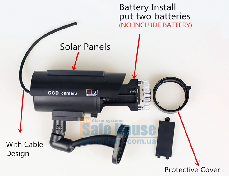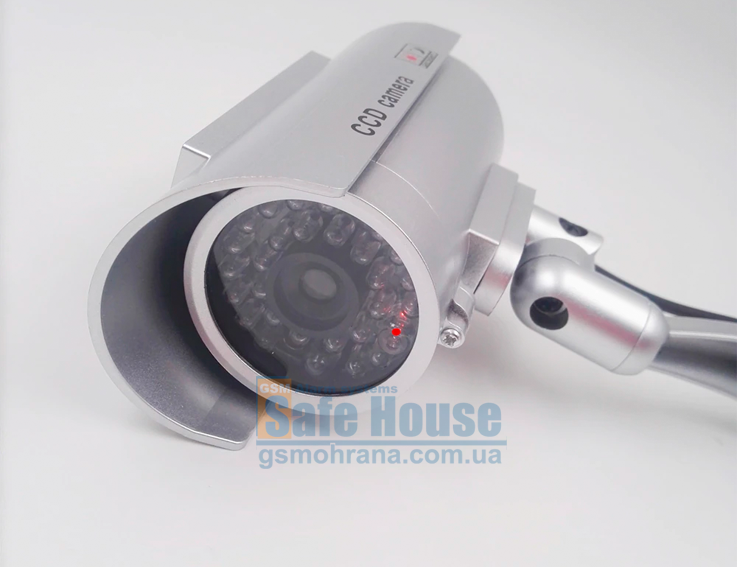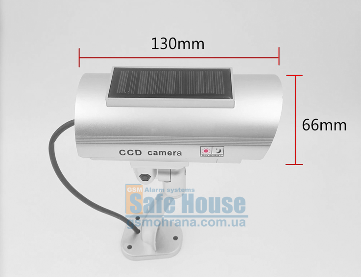 Муляж вуличної камери відеоспостереження із сонячною панеллю Solar Power Fakecam CCD-01 – це дуже реалістична копія справжньої камери відеоспостереження. Навіть із дуже близької відстані практично неможливо визначити, що це фейк. Муляж Fakecam CCD-01 стилізований під циліндричну камеру відеоспостереження з козирком від попадання опадів на об’єктив та кабелем, що імітує підключення камери. Новий дизайн на вибір може бути чорного чи сріблястого кольору. Муляж камери Fakecam CCD-01 призначений винятково для створення ілюзії наявності системи відеоспостереження на об’єкті, реально знижуючи факти крадіжок та вандалізму. Муляж камери може використовуватися в комплексі з діючою системою відеоспостереження для відволікання уваги від справжніх камер та дезорієнтації зловмисника або окремо для привернення уваги, тим самим переконуючи в наявності системи відеоспостереження на об’єкті.